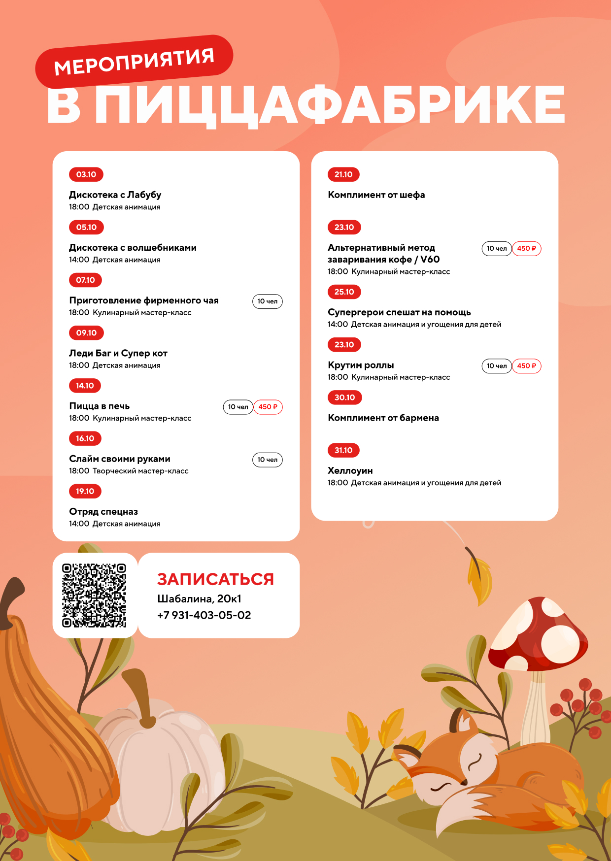 Афиша мероприятий в ПиццаФабрике
