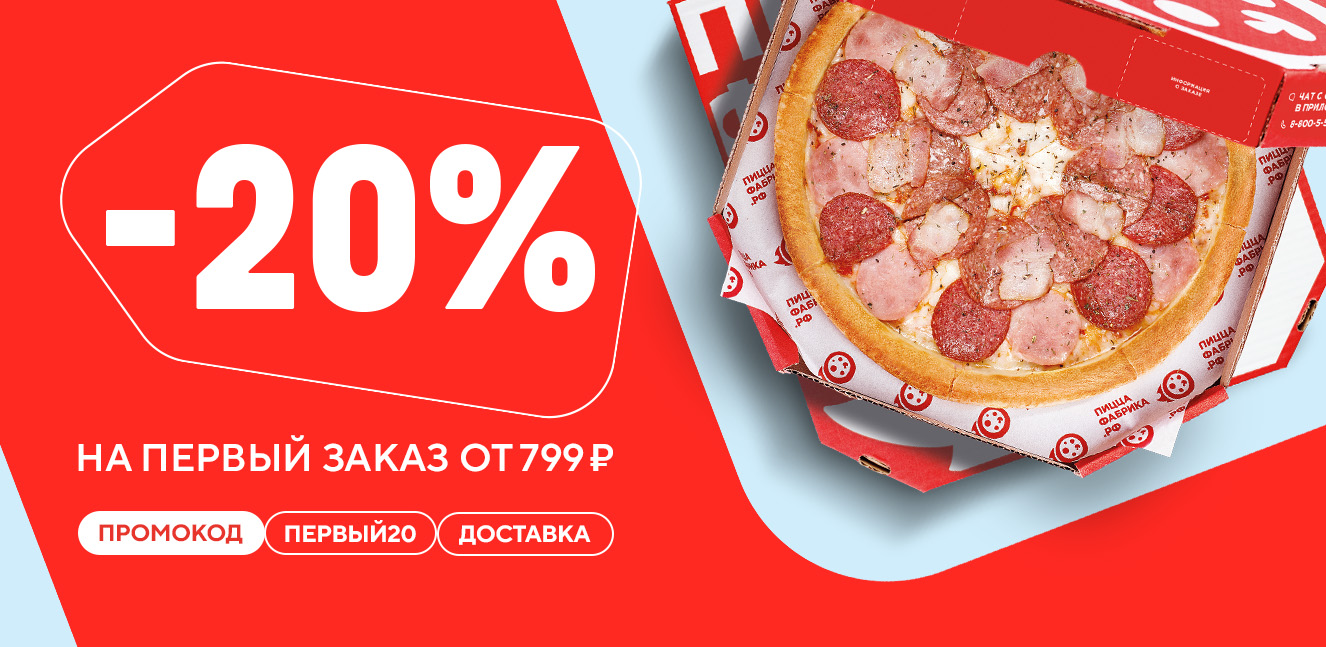 Скидка 20 % на первый заказ в ПиццаФабрике!