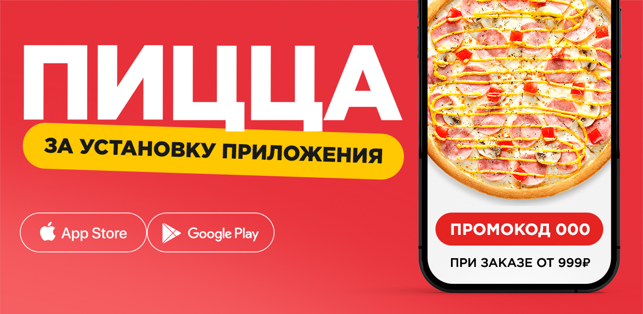 Для участия в акции установите приложение «ПиццаФабрика», оформите в нем первый единовременный заказ с доставкой или «с собой» на сумму от 999 ₽, введите в корзине до оформления заказа промокод 000 и получите 1 пиццу "Чикен Ветчикен" или "Ветчина и грибы" бесплатно!