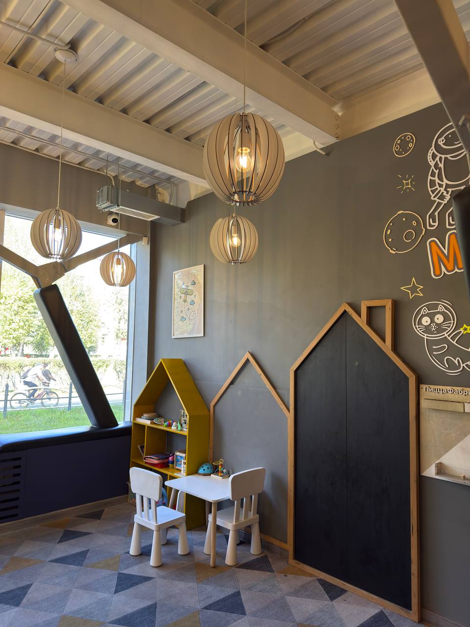 Яркое пространство с большим количеством разных развлечений - это наш конек! Мы умеем организовать досуг маленьких гостей так, чтобы родители спокойно отдохнули, а дети отдохнули активно и весело! Игрушки, детские городки, мультики, аниматоры - спорим, скучно им не будет?!
