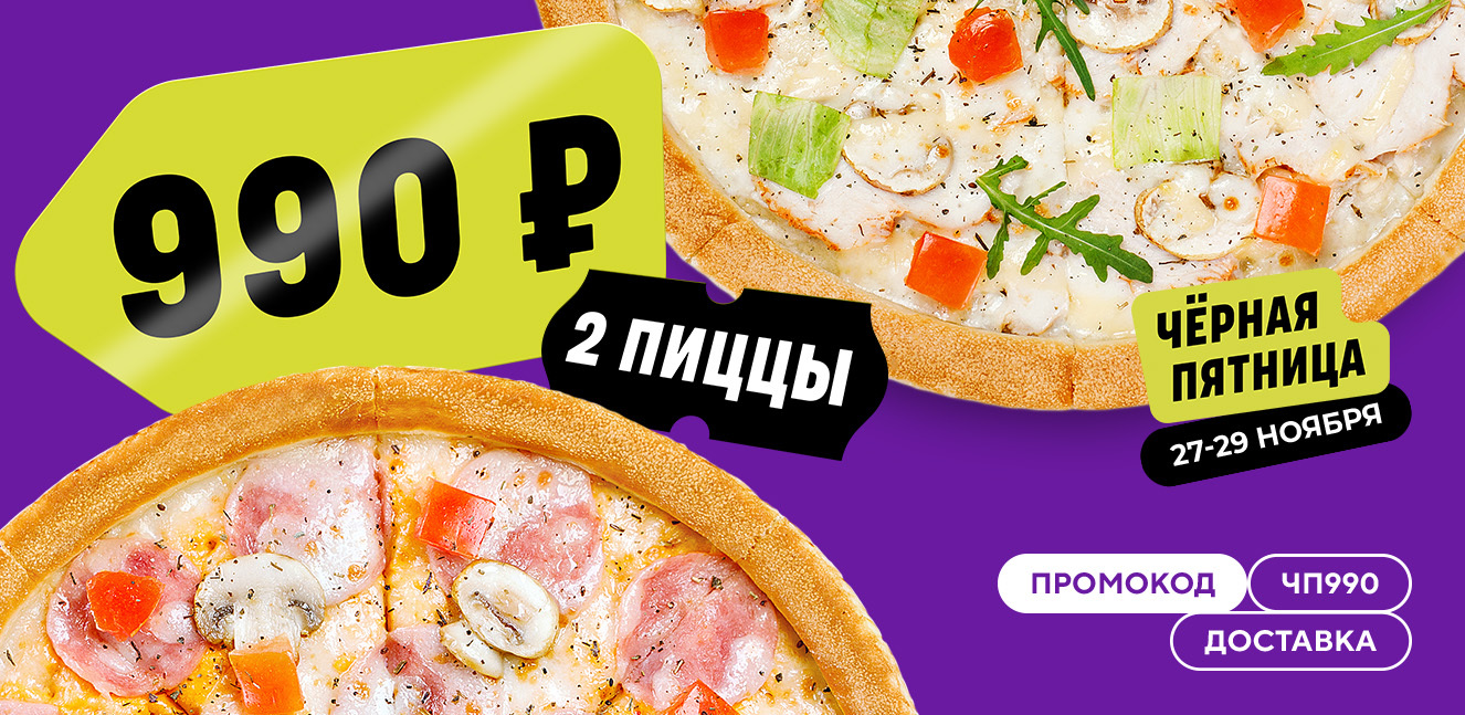 Чёрная пятница! Две пиццы за 990 рублей!