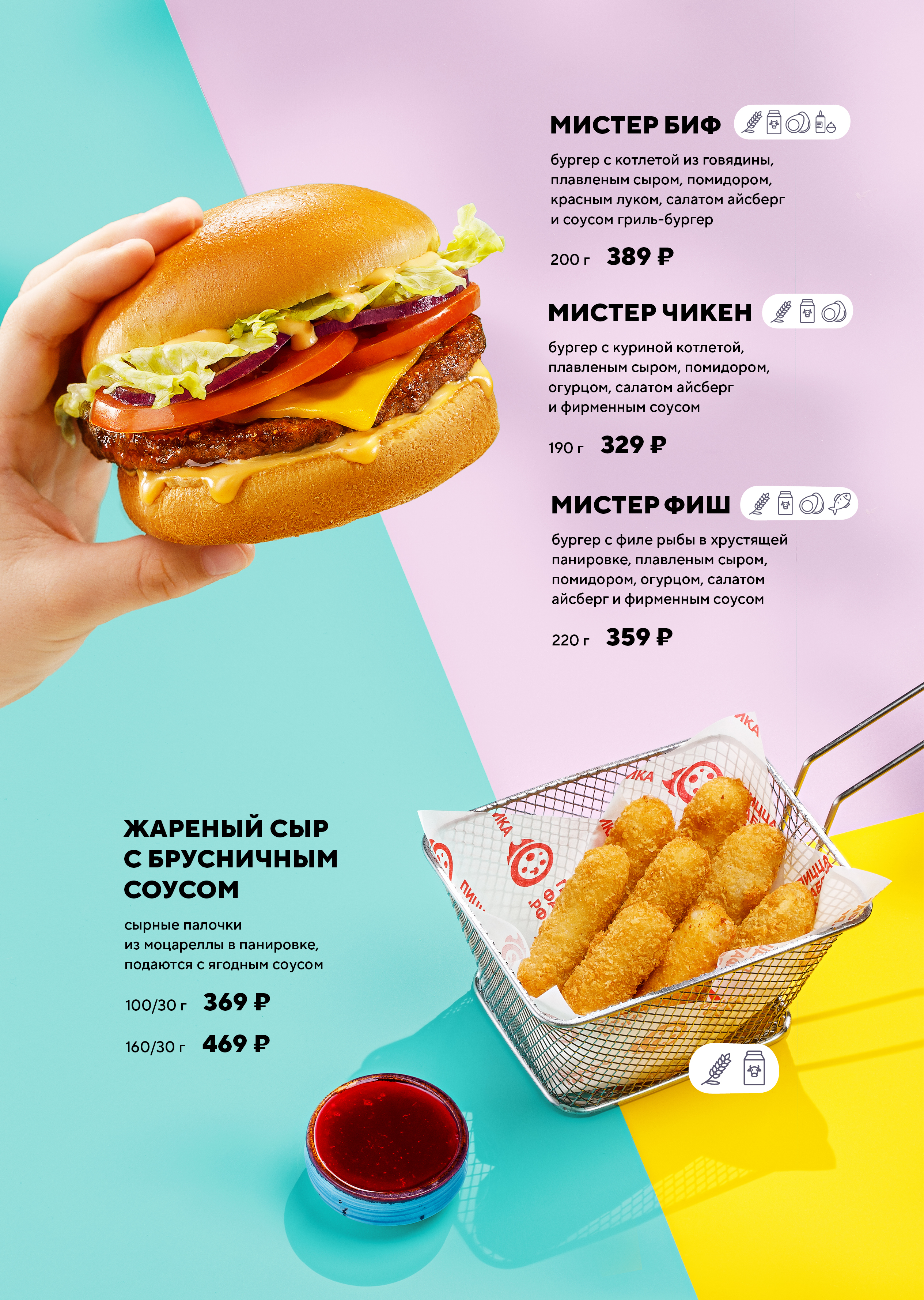 Можем предложить вариант даже на самое профессиональное “не хочу\не буду”. Новое детское меню с яркими картинками не оставит равнодушным наших маленьких гостей. Есть все: и вкусно, и полезно, и красиво, и быстро… Предложим малышам выбирать самостоятельно: это важно - предложить разные варианты!