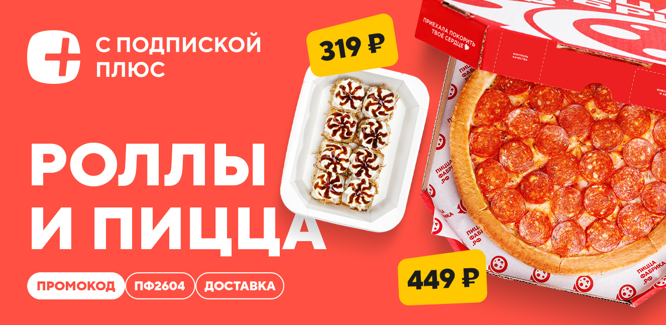 Пицца за 449 рублей и роллы за 319 рублей для подписчиков «Плюс»!