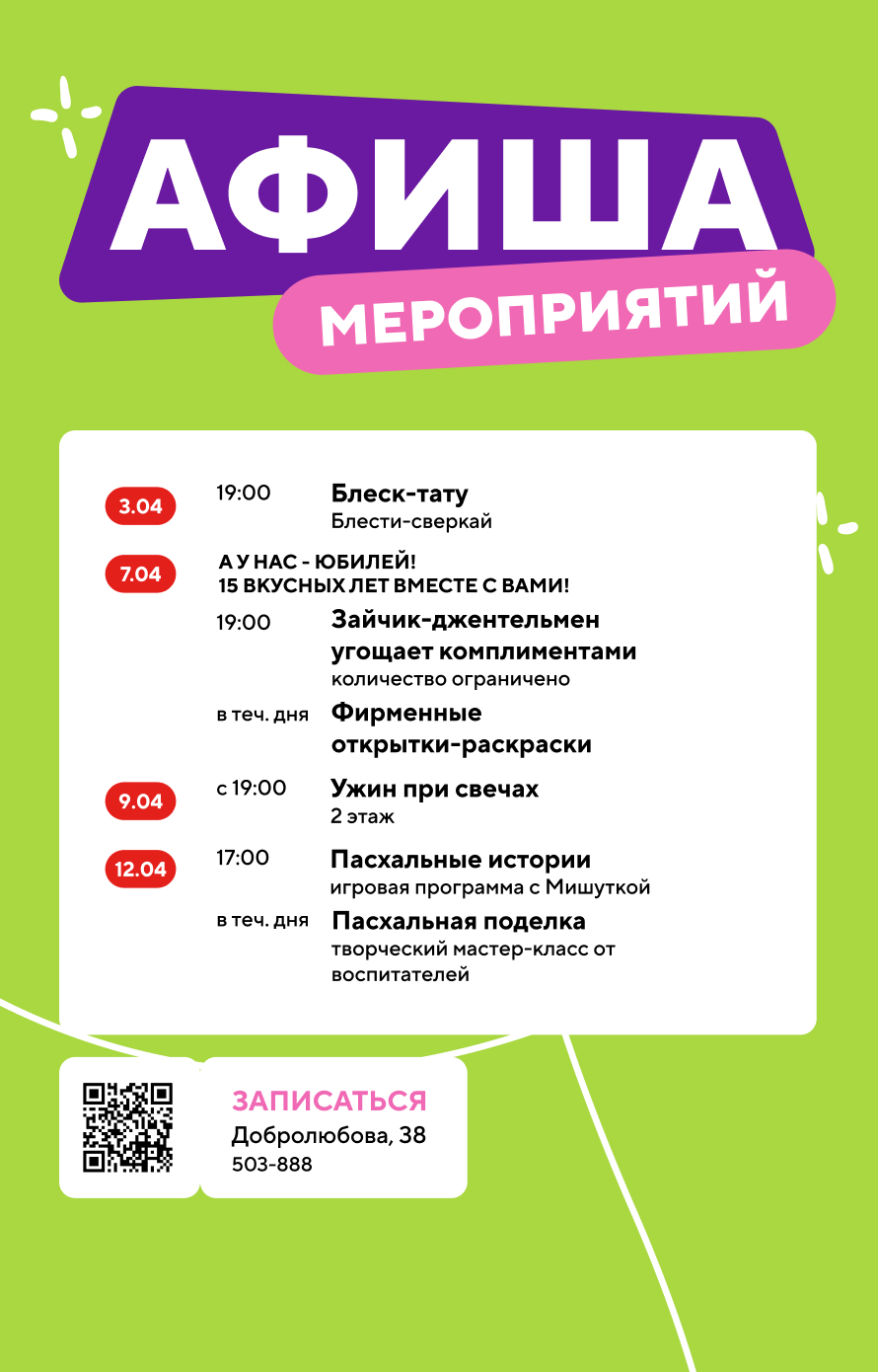 Мероприятия в семейном ресторане на ул. Добролюбова, д.38
